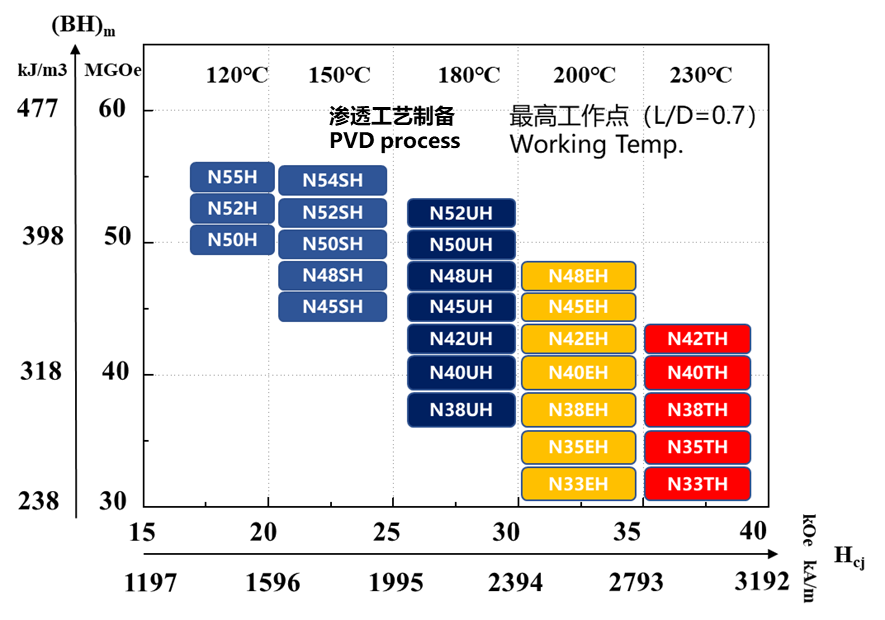 烧结钕铁硼永磁材料相比其他磁性材料,其磁性能优势突出,尤其是具有高的磁能积、矫顽力和能量密度。