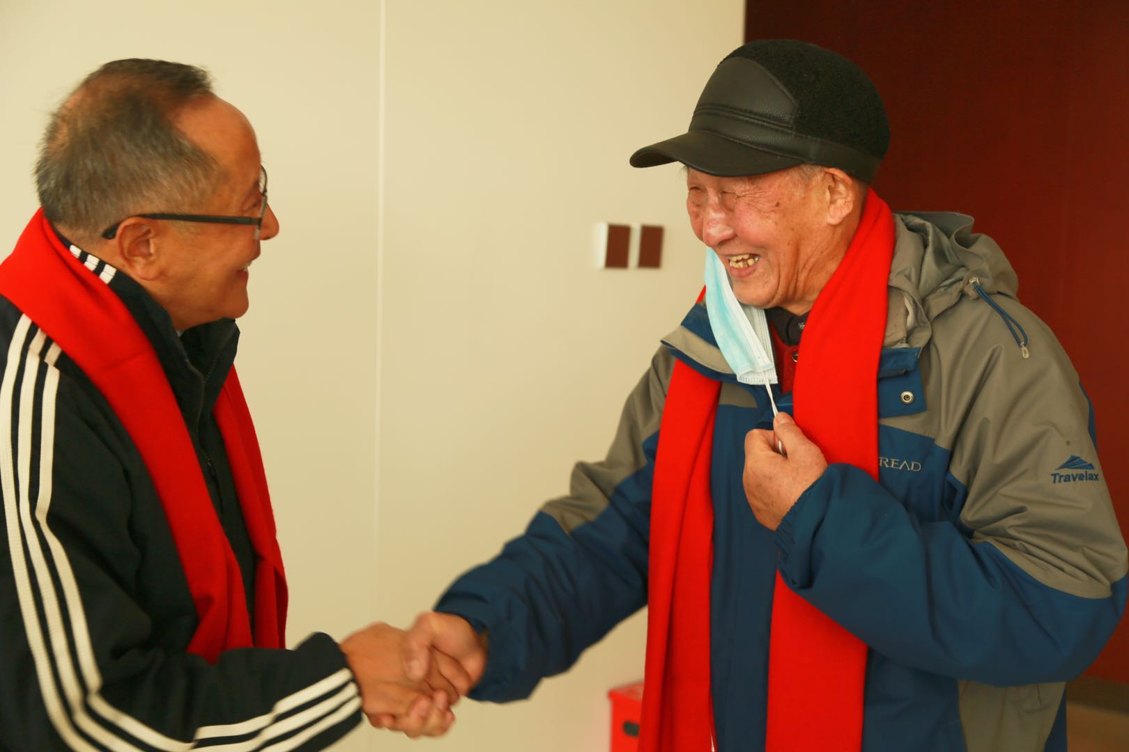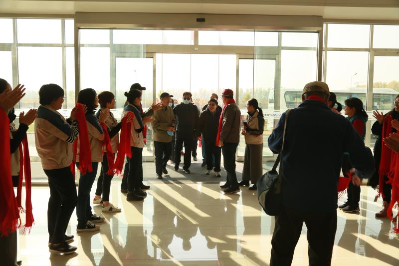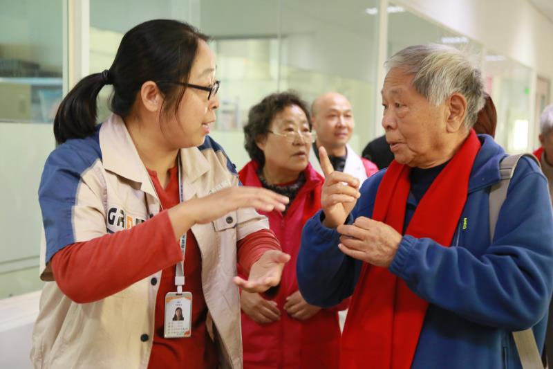 载满退休老同志的大客车缓缓驶入厂区。车刚停下,有研稀土首席专家李红卫,副总经理李宗安、王志强等一行就迅速迎了上去,公司青年员工为他们戴上红色的围巾,对他们表示热烈的欢迎……一声声亲昵的称呼、一次次热情的握手,拉开了退休老同志回公司参观活动的序幕。公司员工亲切地与他们握手、热情交谈,仔细询问他们的身体和生活状况。说不尽道不完的情谊,在手牵手、肩并肩中延续。