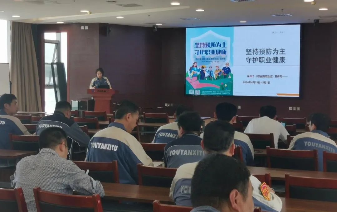 4月26日下午,安全部组织现场管理人员和接触职业病危害因素的员工代表开展职业健康知识专题培训,对《职业病防治法》等相关法律法规内容、劳动者职业危害防护措施等内容进行讲解,结合职业病典型案例,提醒职工充分认识职业病危害,掌握预防知识,提高防范能力,切实保障劳动者的职业健康。