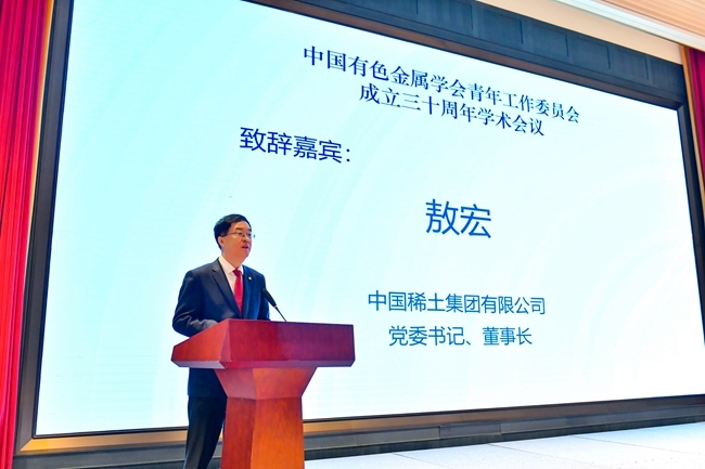 中国稀土集团党委书记、董事长敖宏,江西理工大学党委副书记罗仙平,矿冶集团原副总经理黄松涛,中国有色金属学会副理事长高焕芝,中国有研副总经理、有色青委会主任李志辉等出席会议并致辞。青委会秘书长陈春生作有色青委会成立30周年工作报告。大会开幕环节由中国有研科技发展部副总经理、有色青委会副秘书长尹向前主持。