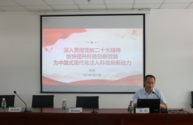 国联研究院党委书记、总经理徐冉代表公司党委汇报了国联研究院主题教育进展情况,并讲授专题党课,题目是《深入贯彻党的二十大精神,加快提升科技创新效能,为中国式现代化注入科技创新动力》。