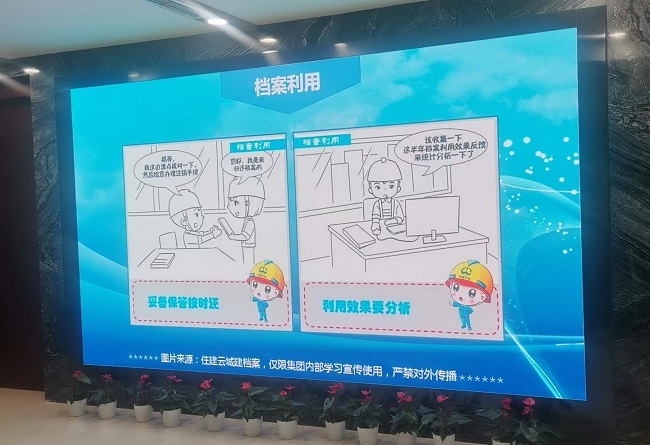 在档案宣传月期间,有研集团总部和各所属公司以张贴“喜迎二十大·档案颂辉煌”主题宣传挂图的形式,大力宣传档案治理、档案资源、档案利用和档案安全“四个体系建设”工作,认真贯彻依法治理、拓展资源、方便服务、安全底线的理念。同时利用网络信息以卡通漫画的形式自制了宣传材料,在总部和各所属公司宣传屏幕上循环播放,使档案业务知识变得更加生动、有趣。