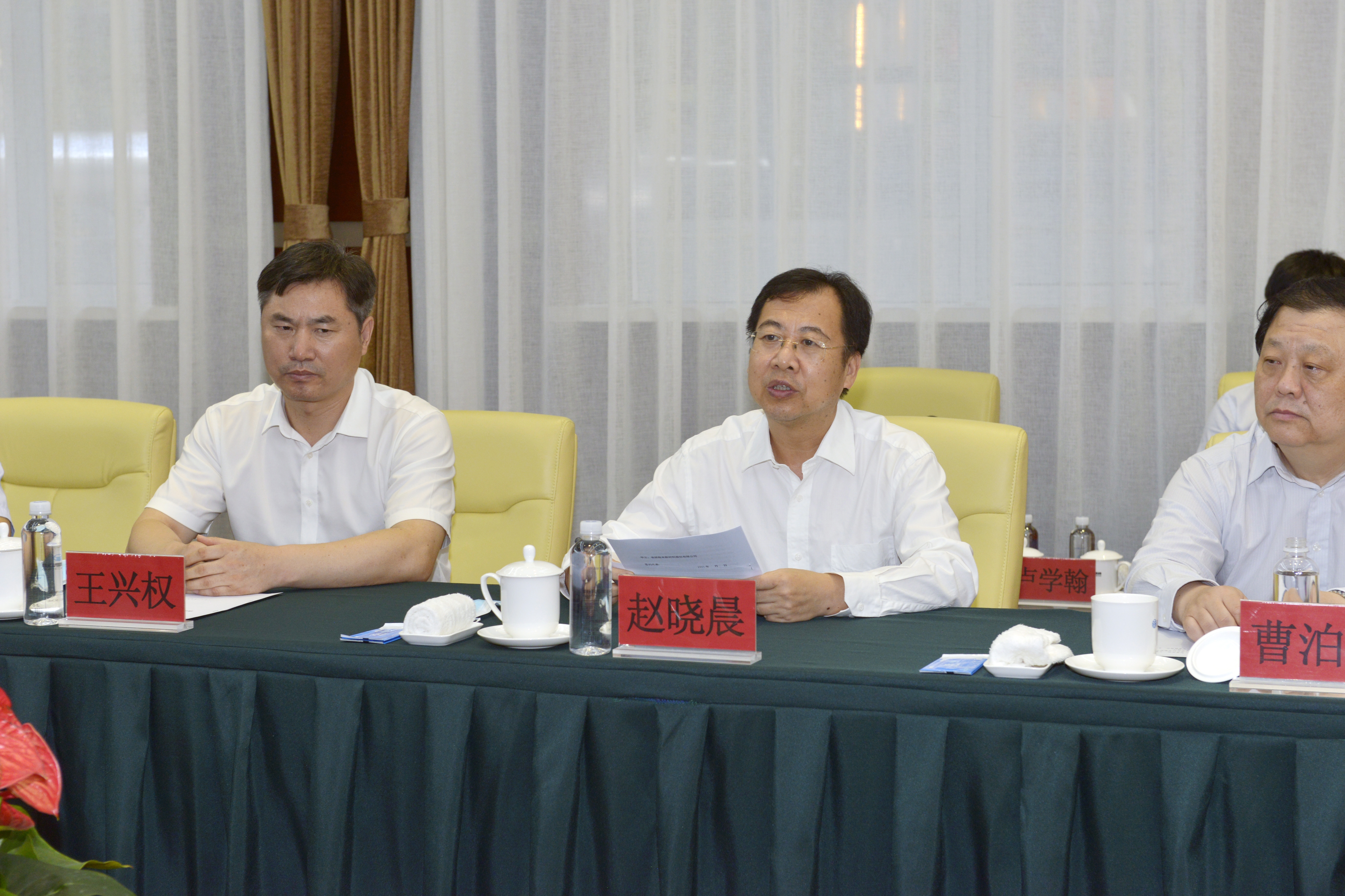9月14日至16日,有研集团党委书记、董事长赵晓晨,纪委书记曹泊宇,副总经理王兴权一行到唐山三友集团访问交流,并出席有研粉材与三友硅业签约系列活动。三友集团党委书记、董事长、总经理王春生陪同座谈交流。