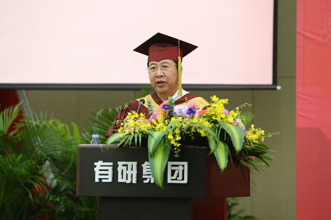 院长赵晓晨发表讲话,他回顾了几年来有研各方面的发展和同学们的成长。寄语全体毕业生要胸怀报国之志,在贡献国家中实现人生价值;脚踏实地奋斗,在平凡的岗位做出不平凡的成绩;树立终身学习观念,长期坚守,不断学习、不断探索;培养团结协作意识,训练整合资源实现快速创新的能力。希望毕业生牢记习近平总书记嘱托,肩负起历史使命,坚定前进信心,矢志报国,奋力前行,不负时代,不负韶华。最后为全体毕业生送上最真挚的祝福,祝同学们前程似锦、幸福快乐!
